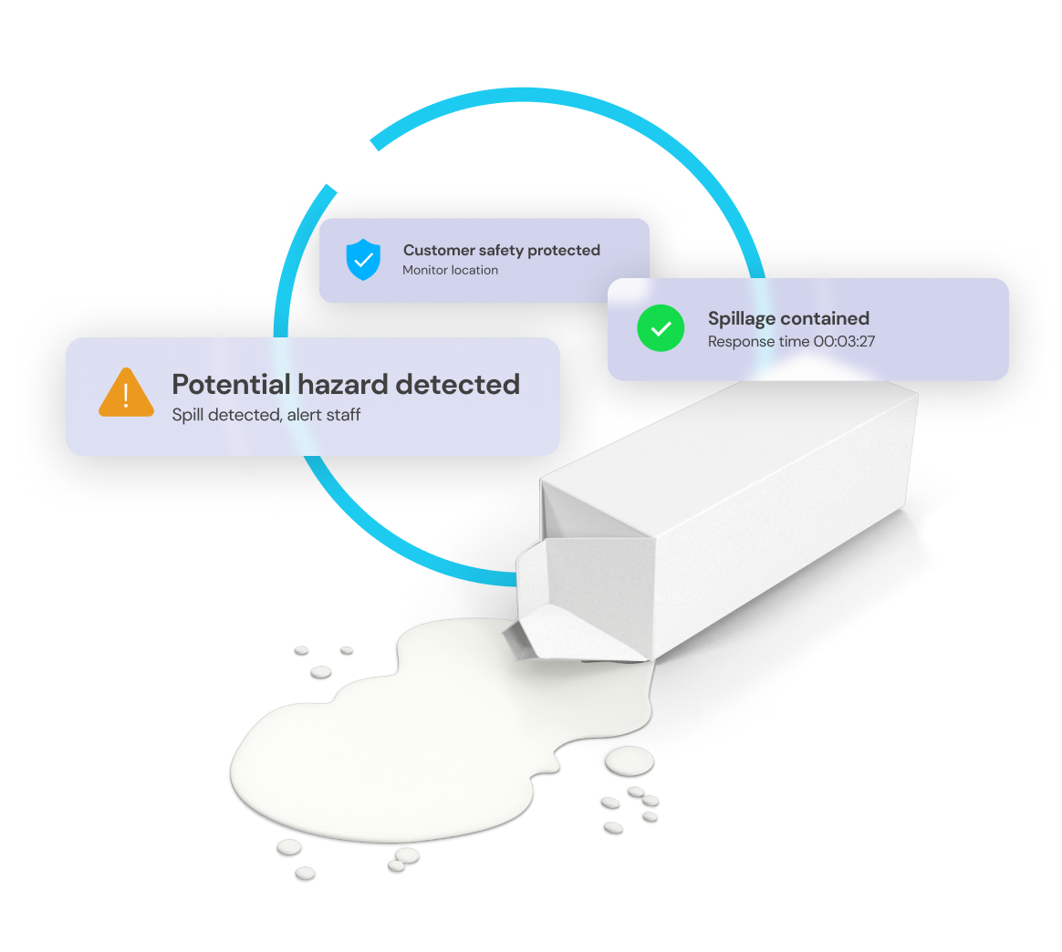 Accurate identification of people and objects enables our AI to only alert for true spill events or unattended items.
